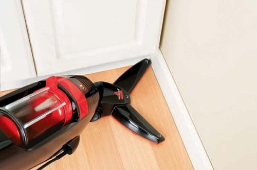 - Bagless 12 amp vacuum cleaner for bare floors and low-pile carpeting- Unique V-shaped base ensures a thorough clean from edge to edge